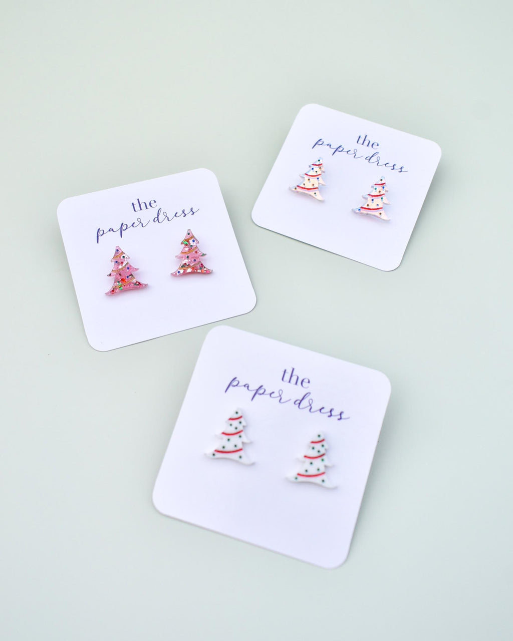 PINK CONFETTI CHRISTMAS TREE EARRINGS