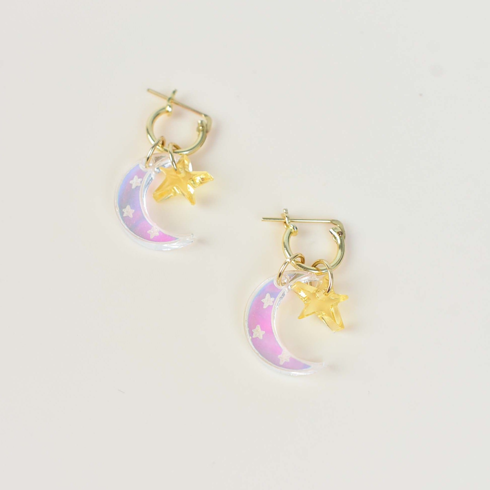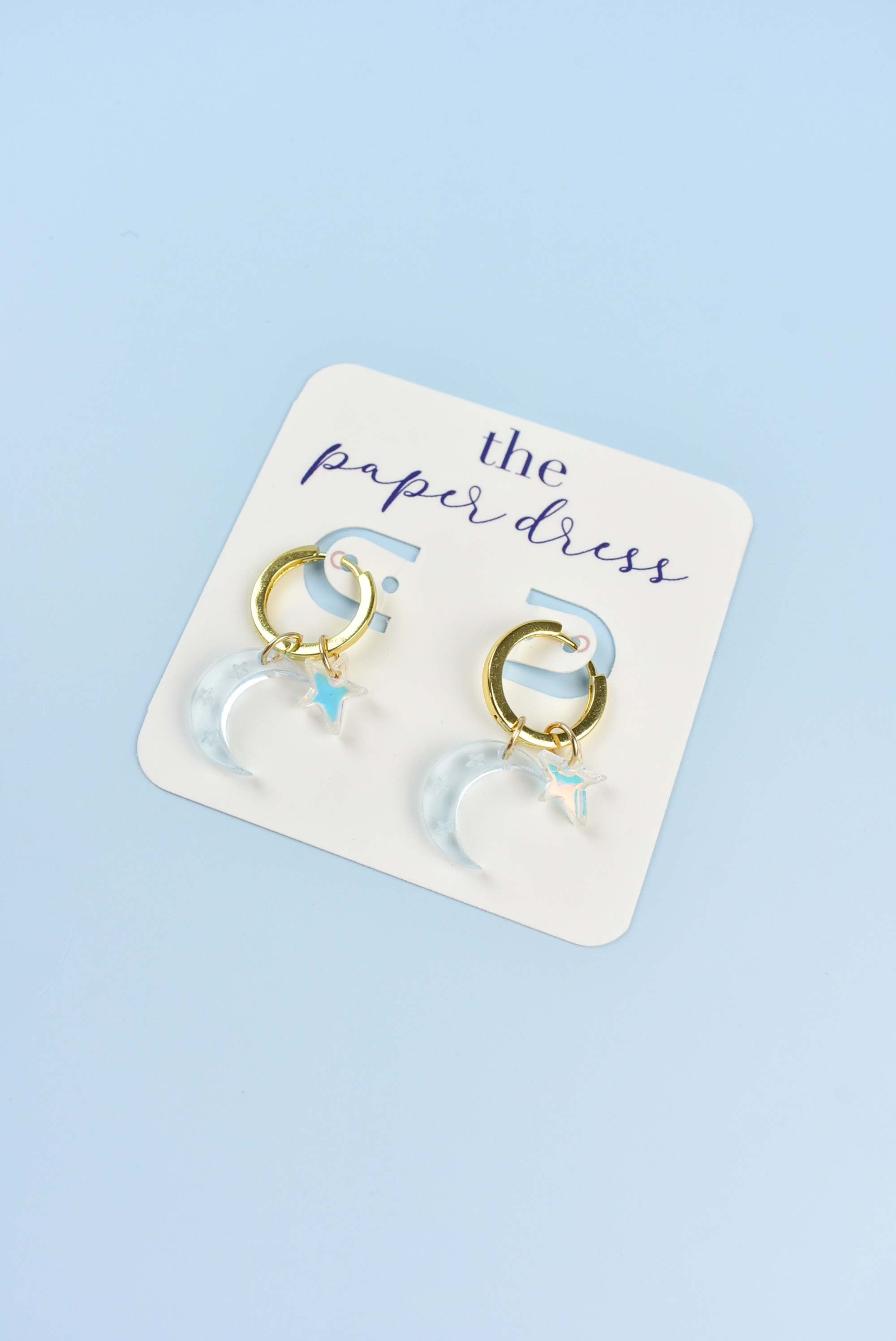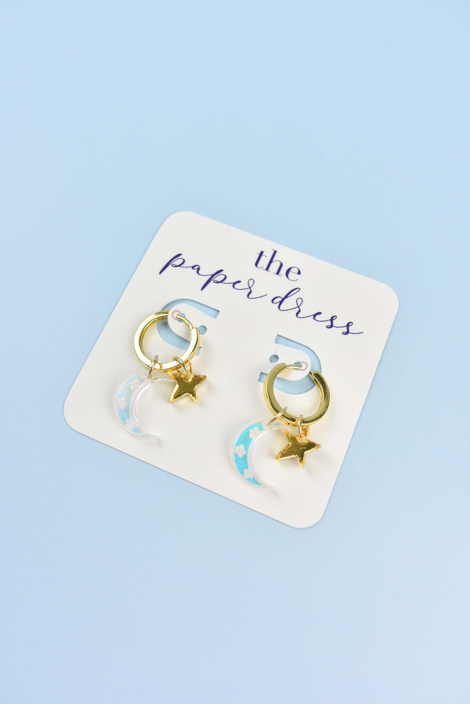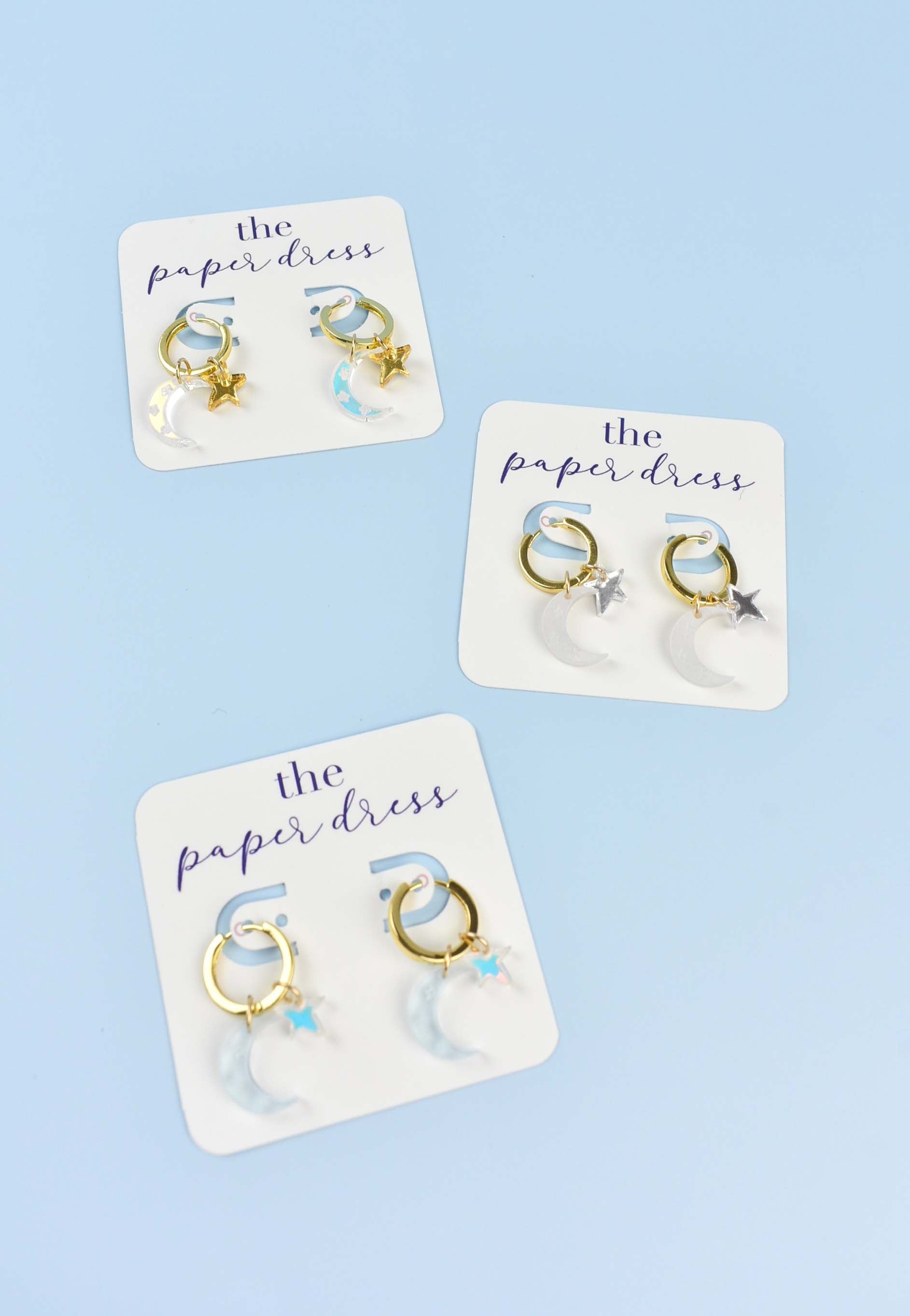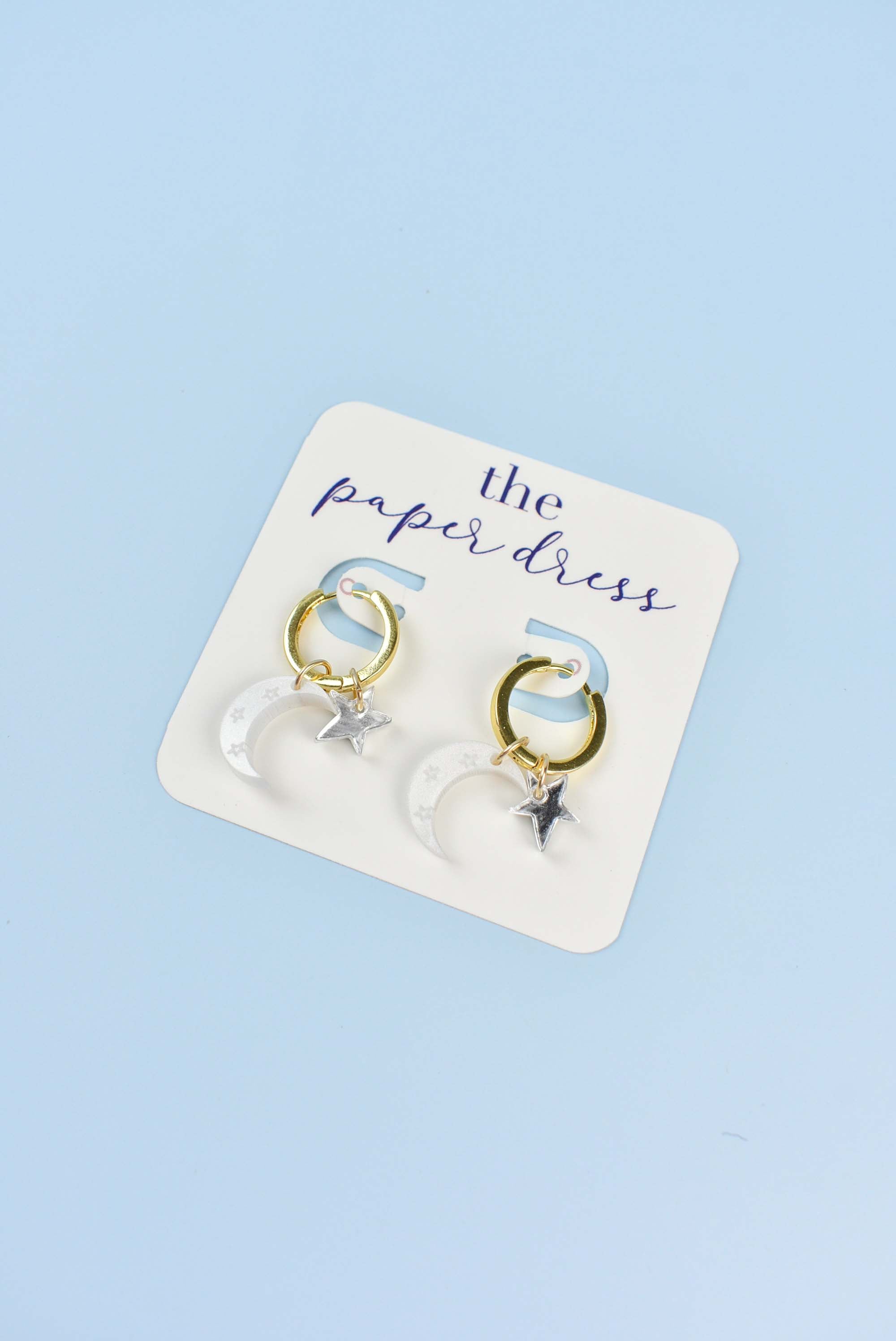 A perfect duo, the Charm hoops feature the perfect gold huggie hoop with moon and star charms.