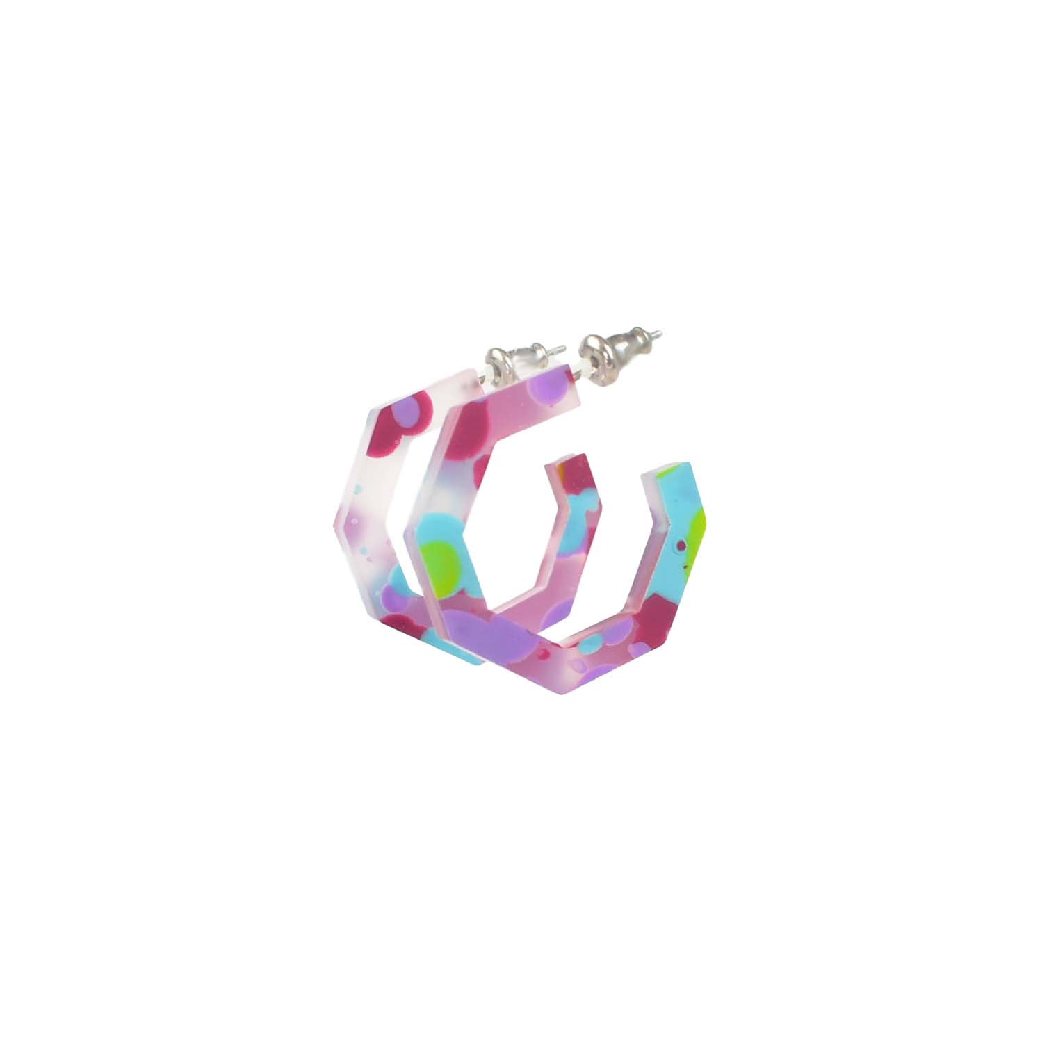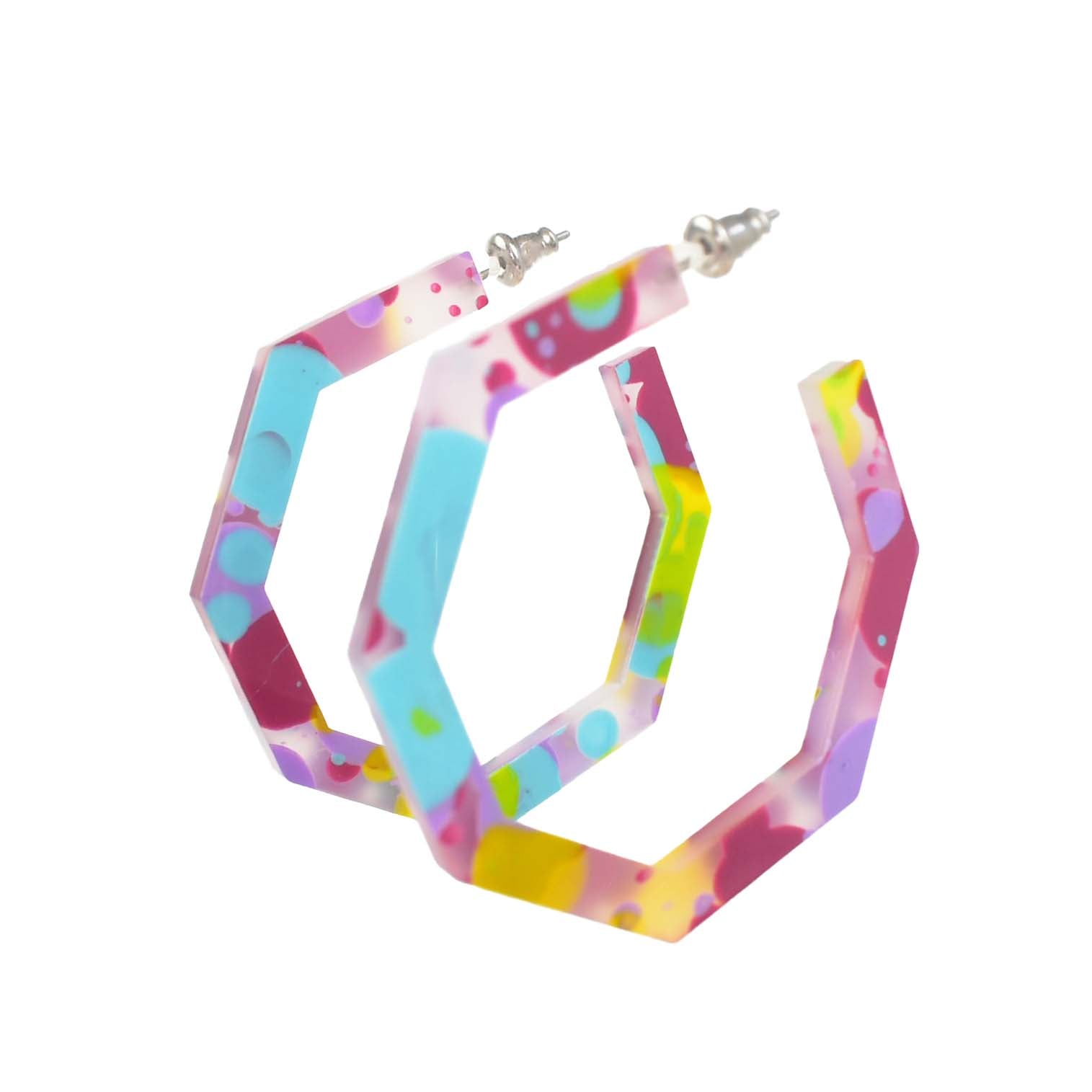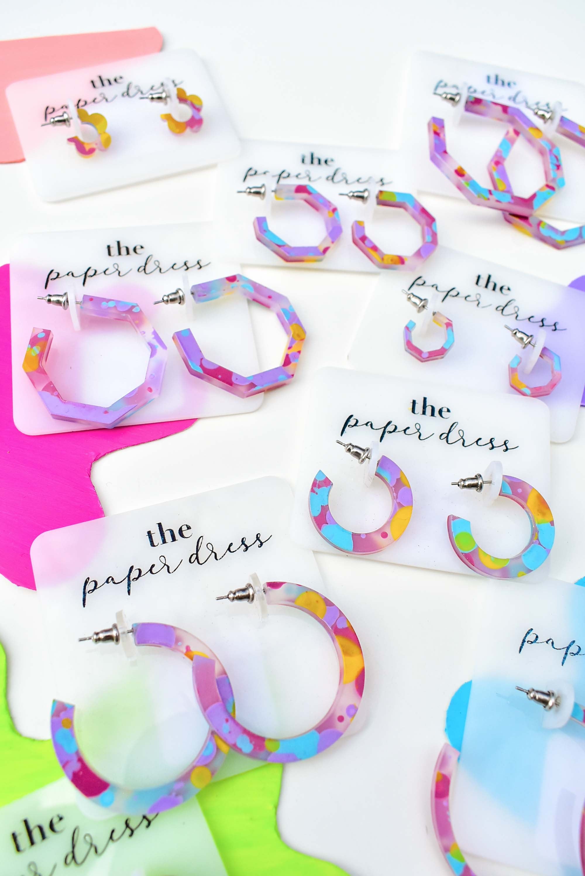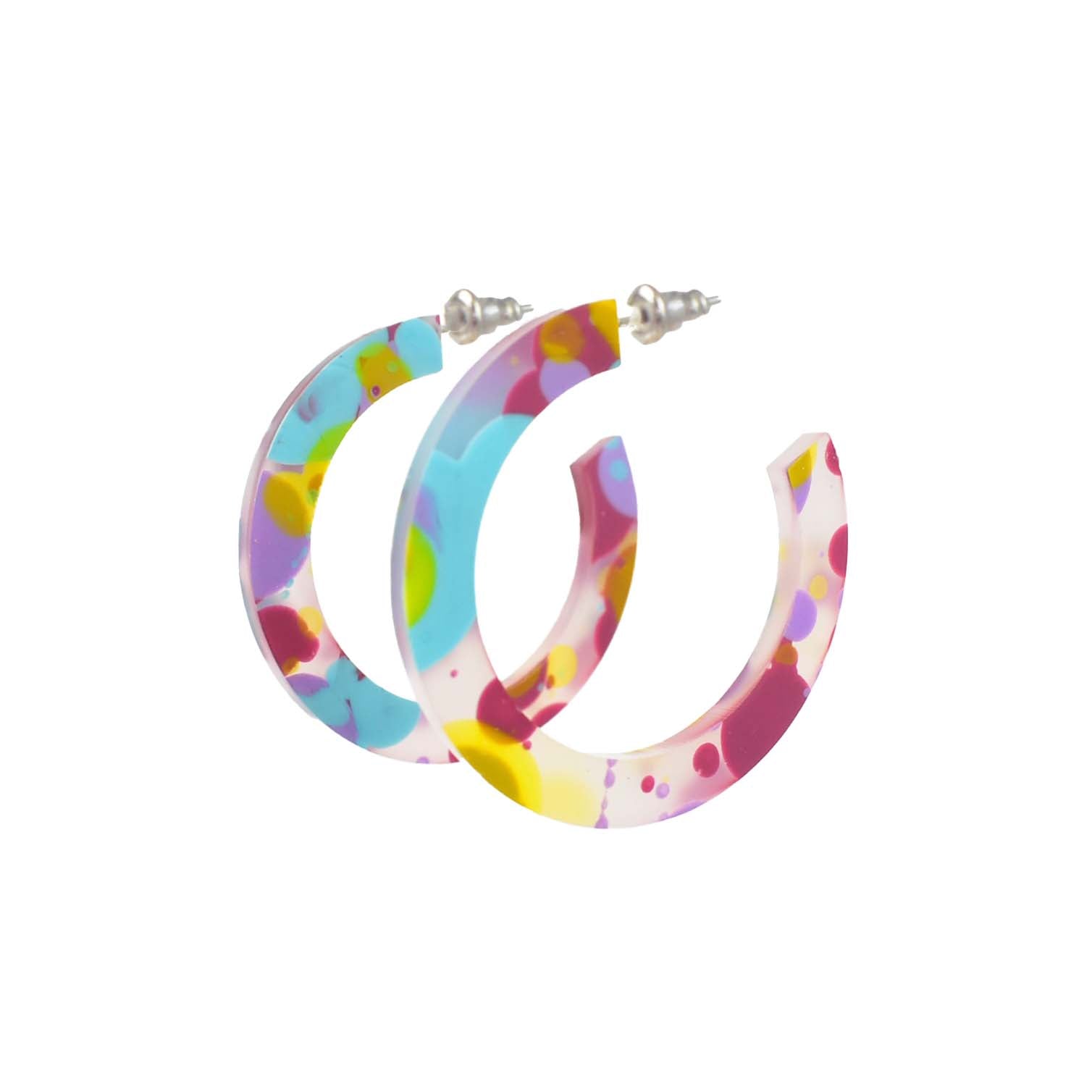 Be the life of the party with the quirky Splatter hoops! Made with lightweight acrylic and a splash of vibrant, multicolored splatter, they'll add the perfect pop of pizzazz to any outfit. And because they're so lightweight and comfy, you can wear them all night long! Choose from four sizes and styles to find your perfect fit.