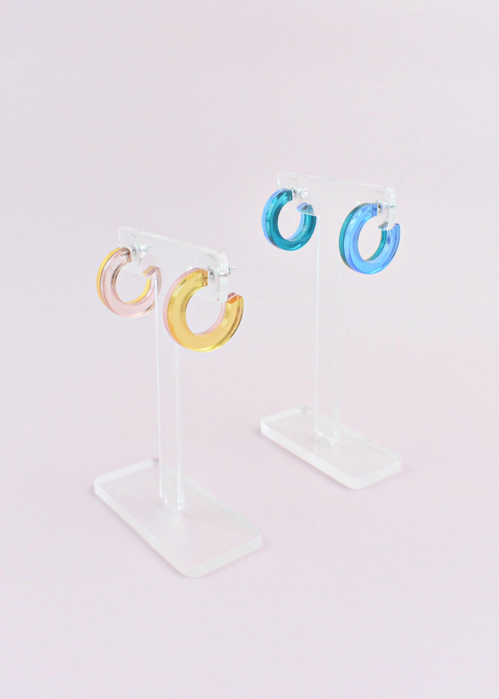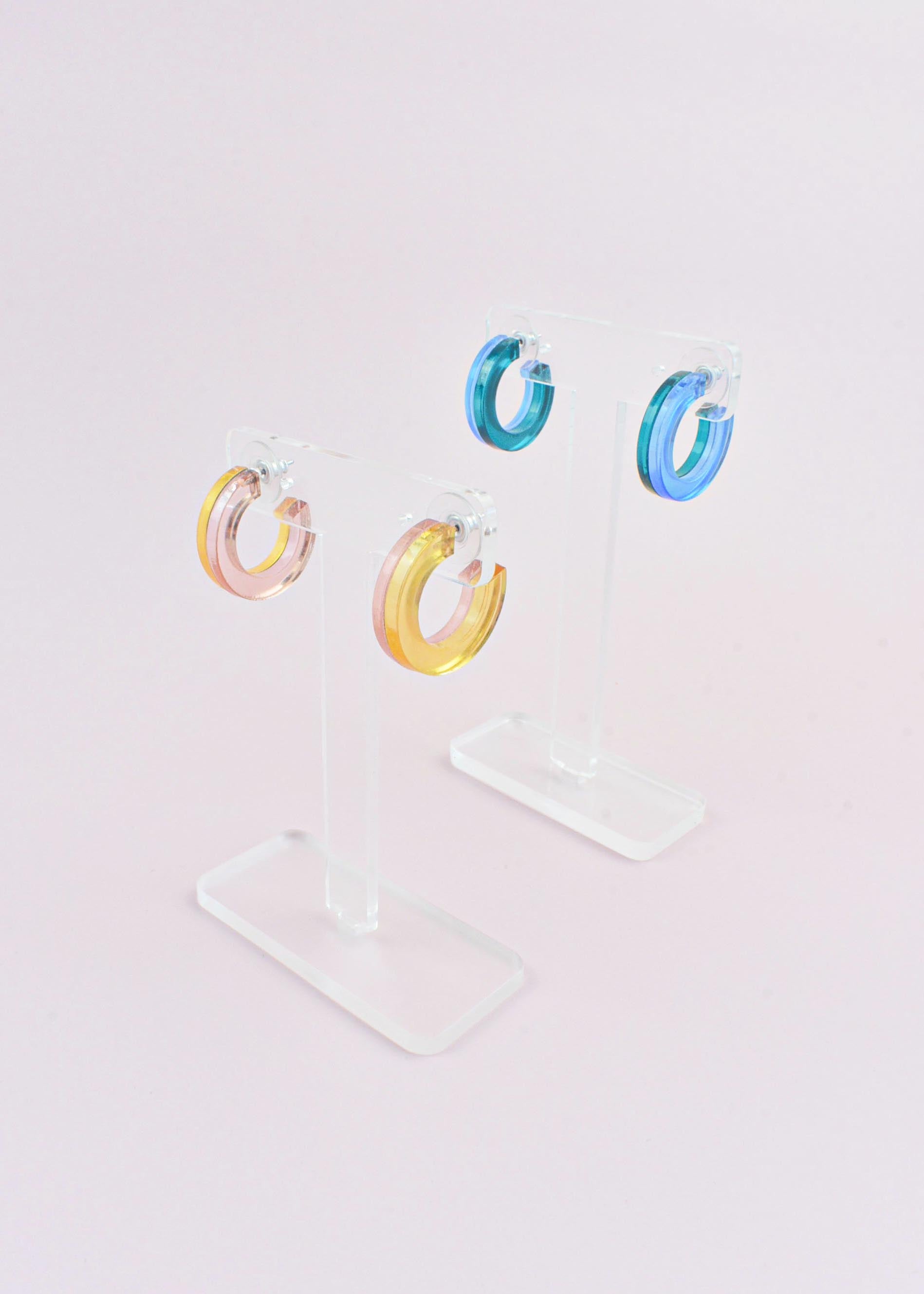 Elevate your style with our Duo Hoop earrings. Featuring two beautiful jewel tones, they'll add a touch of glamour to your look.