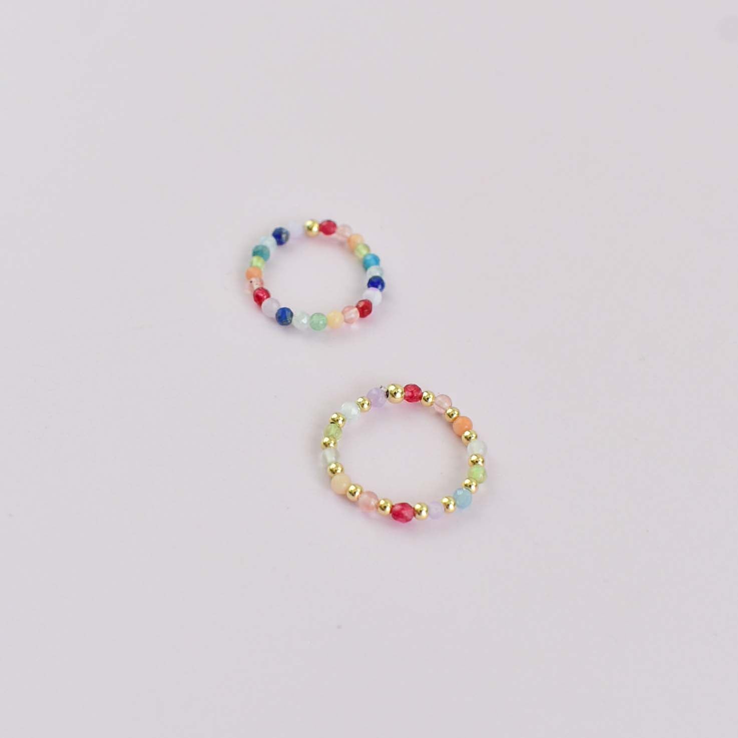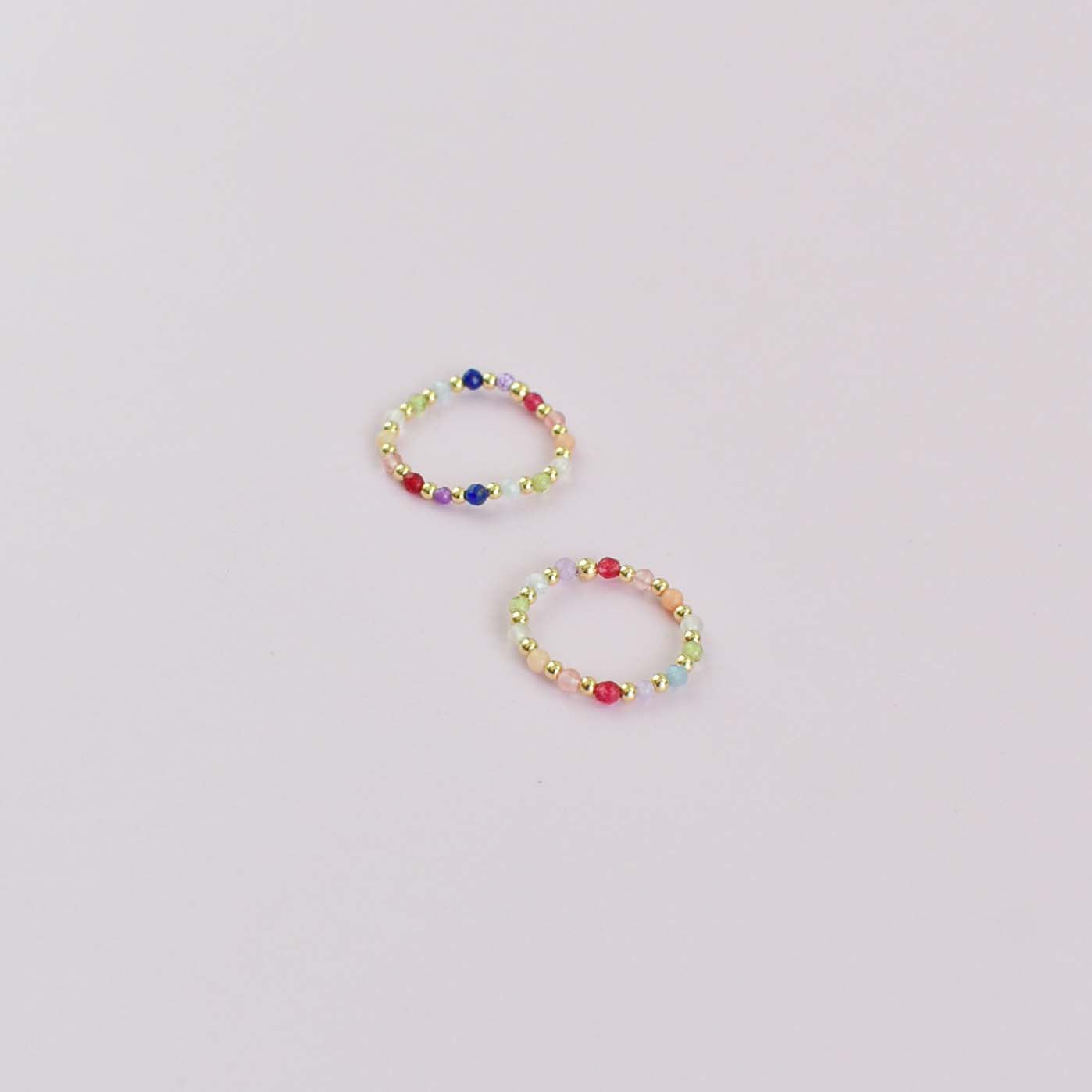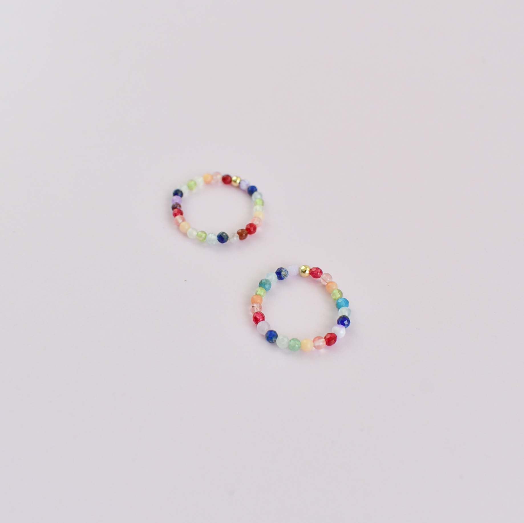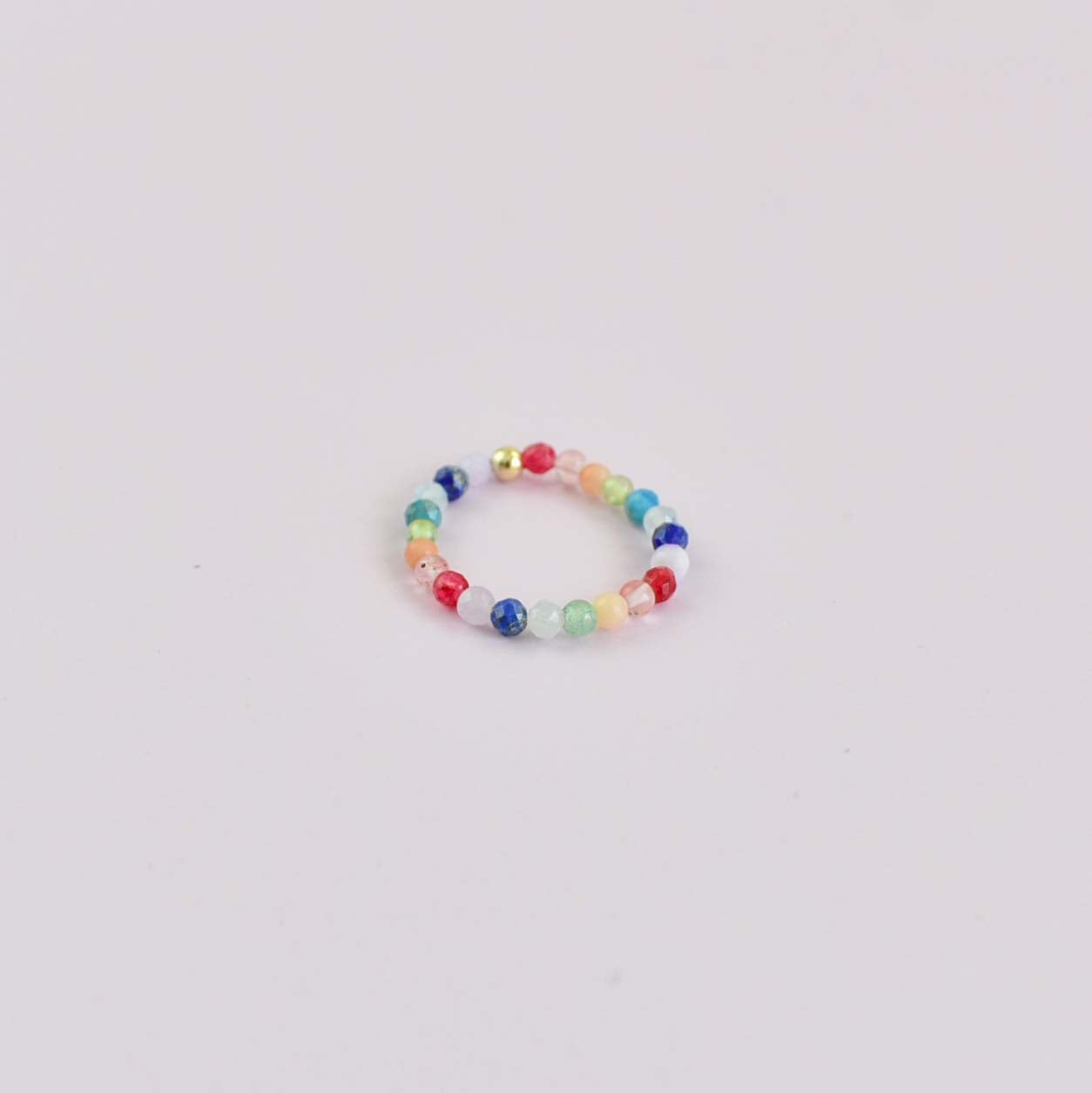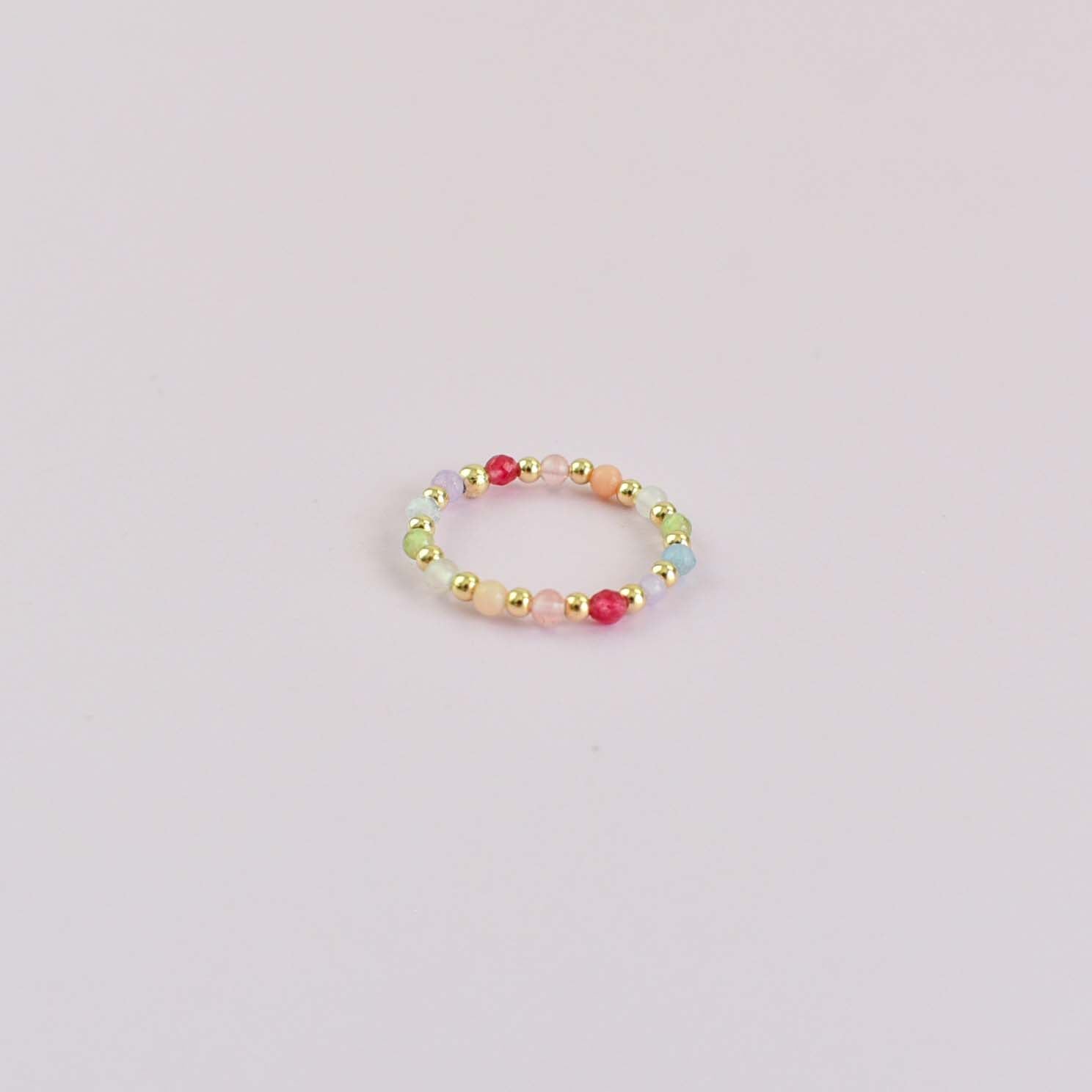 A stretchy ring made with a rainbow of gems and gold filled beads. The perfect addition to your ring stack!
