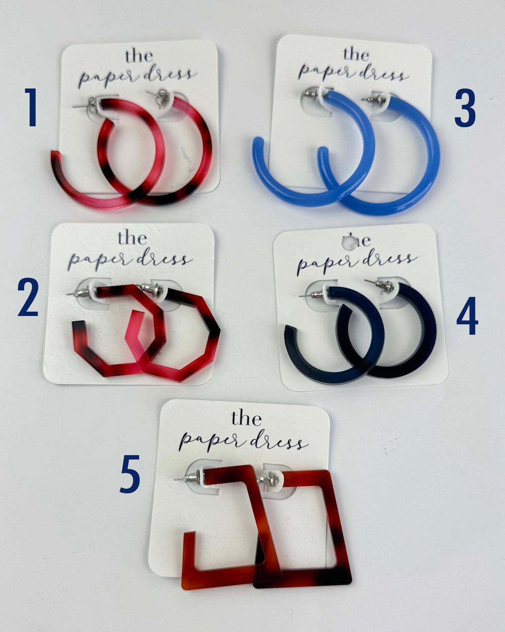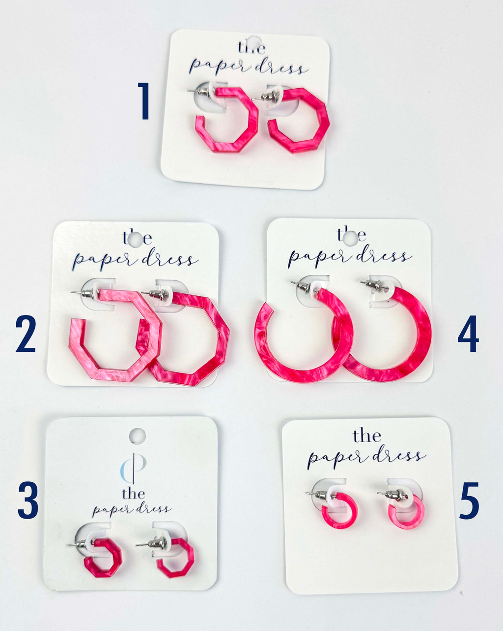 PINK TORTOISE SHELL OCTAGON HOOP EARRINGS