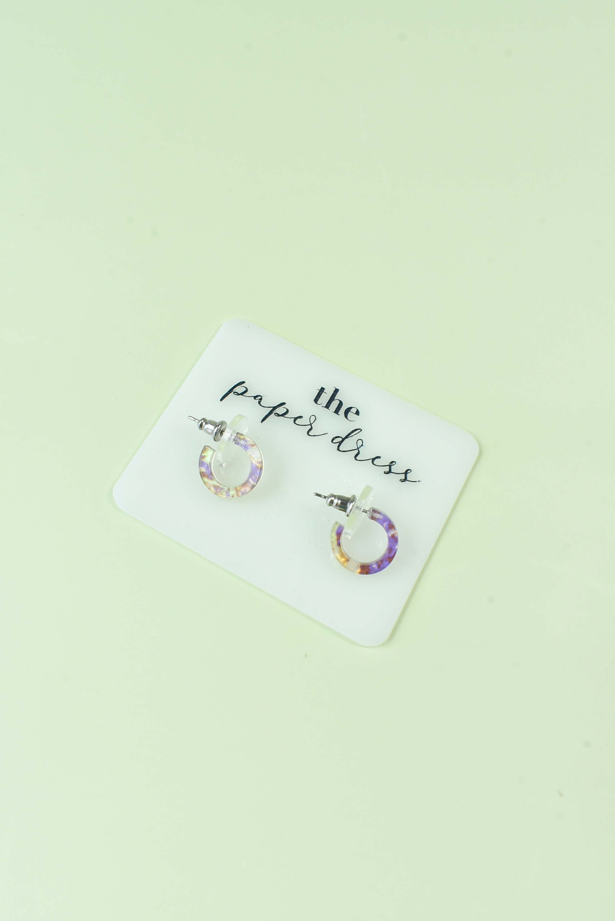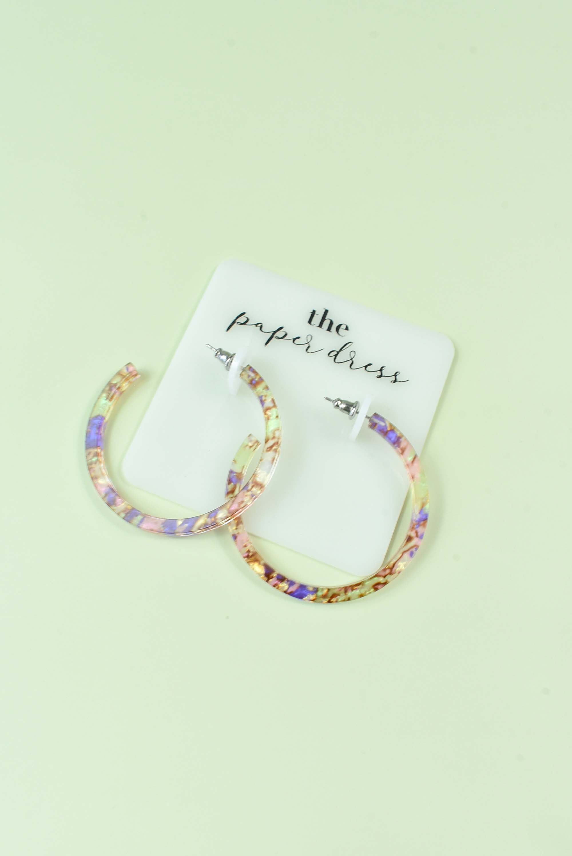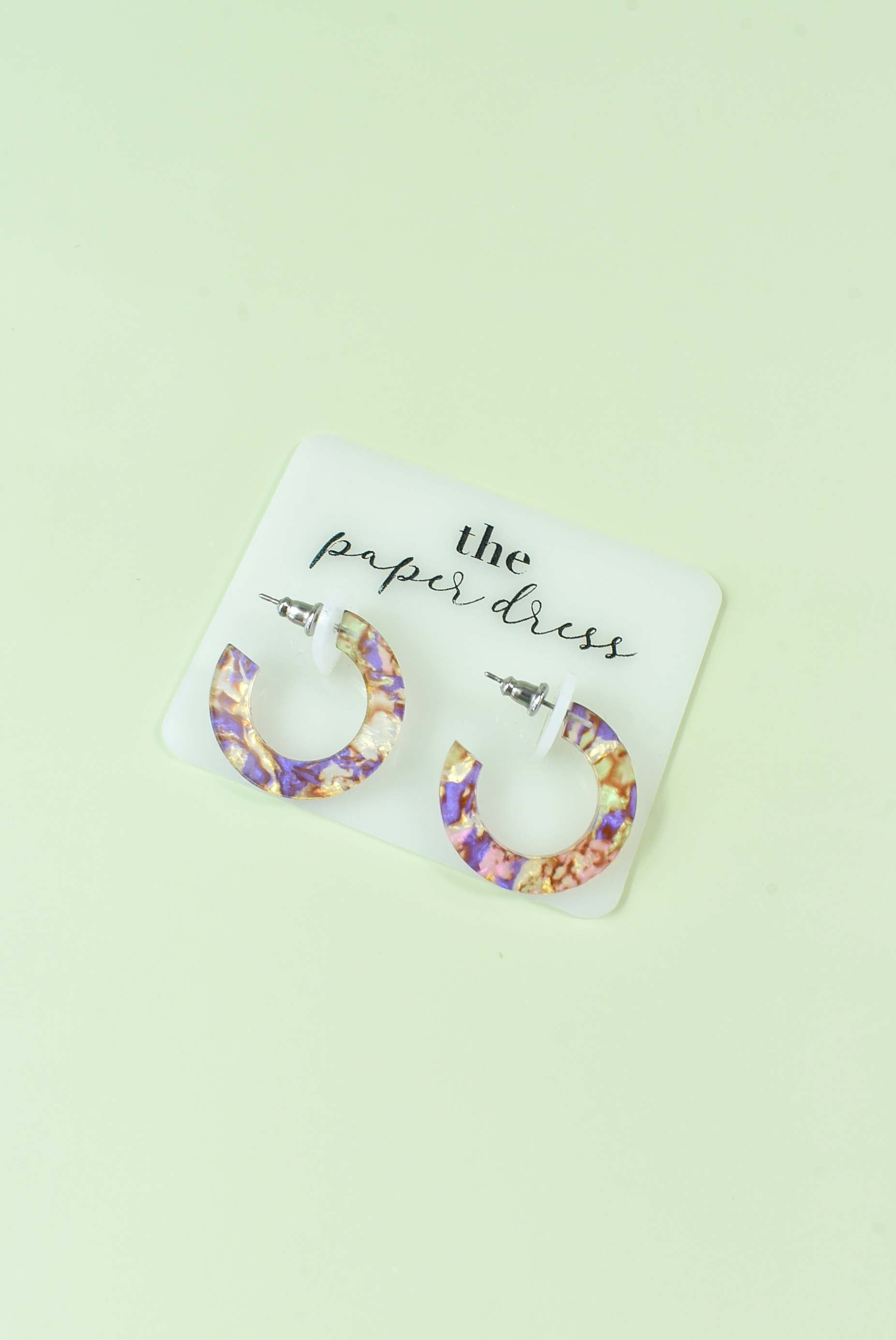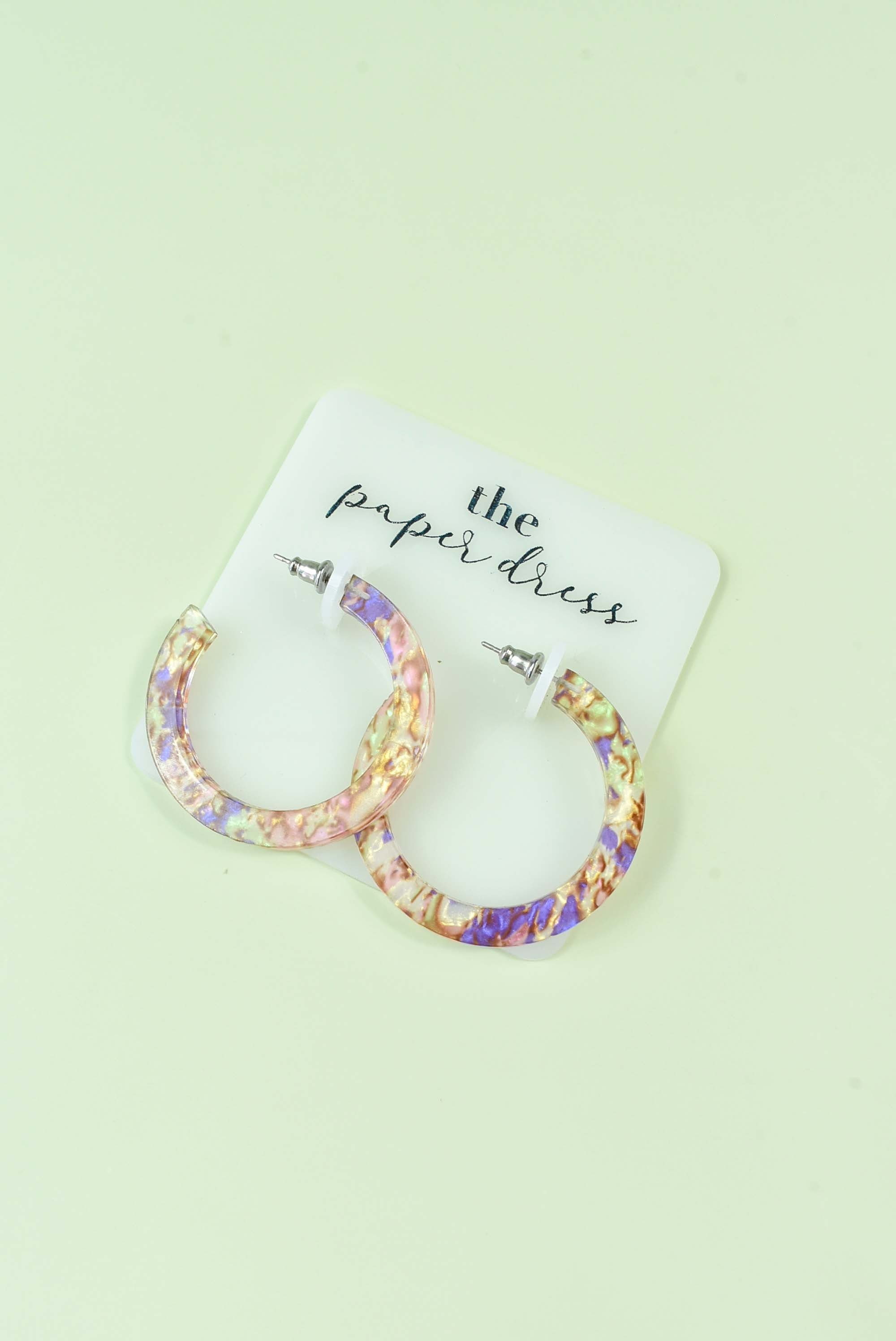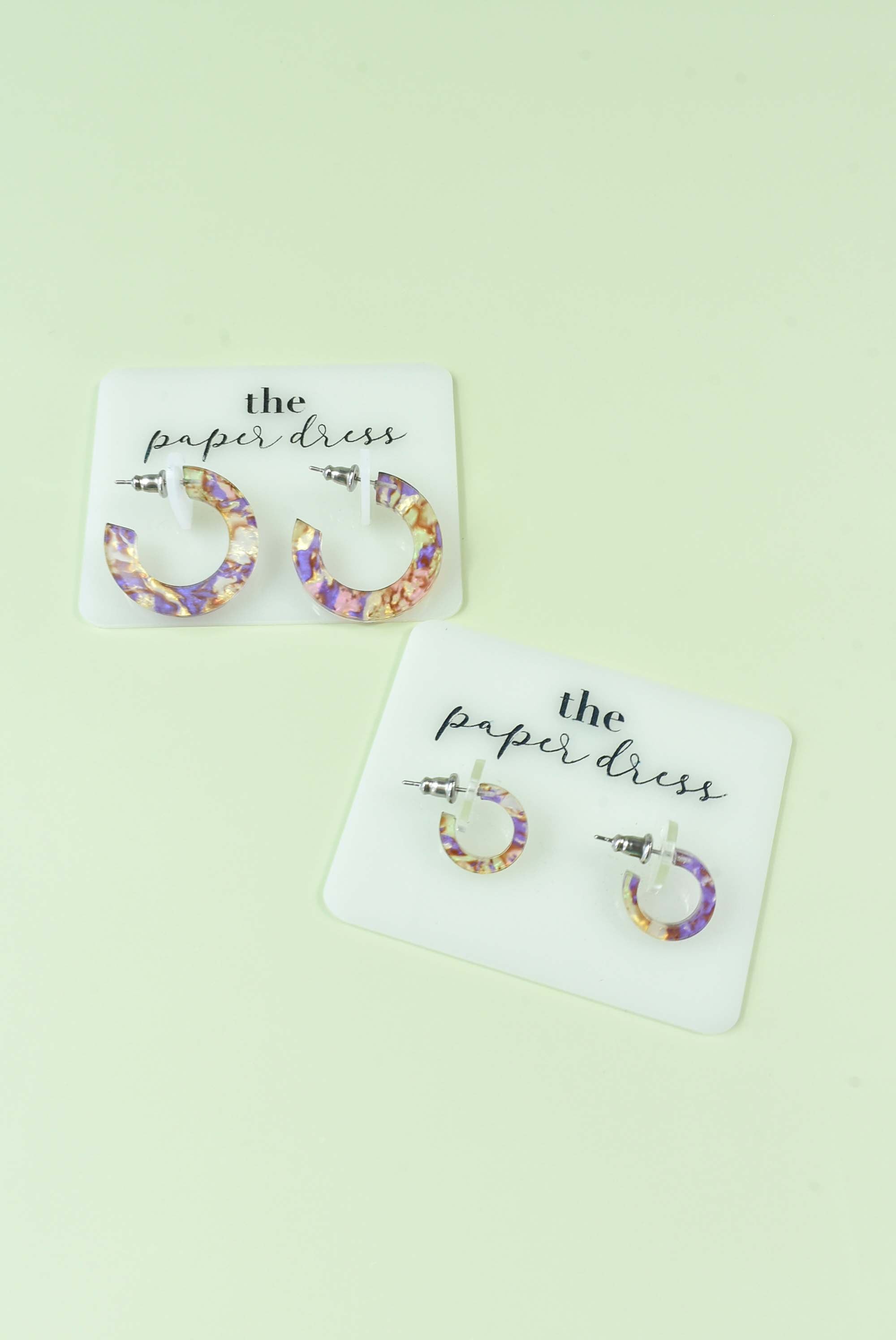With hints of purples, greens, and gold, our Rainbow Ripple hoops are an earthy neutral earring that matches almost anything! Choose from four sizes to find your perfect fit.